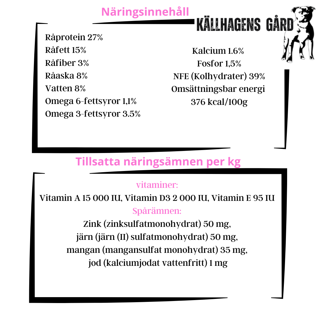 Källhagens gård presenterar nu en riktigt nyhet även för små hundar! Här ett hundfoder där vi med 100% säkerhet kan garantera innehållet fullt ut!