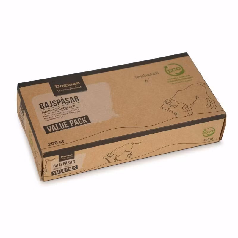 Tillverkad av 100% återvunnen plast, miljövänlig och extra tjock bajspåse av slitstark kvalitet.