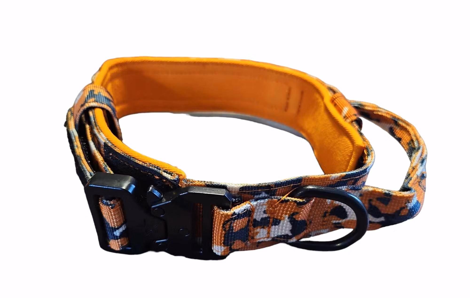 Detta halsband har även ett smidigt handtag som man kan fälla in med smidig kardborre stängning om man inte behöver använda de.