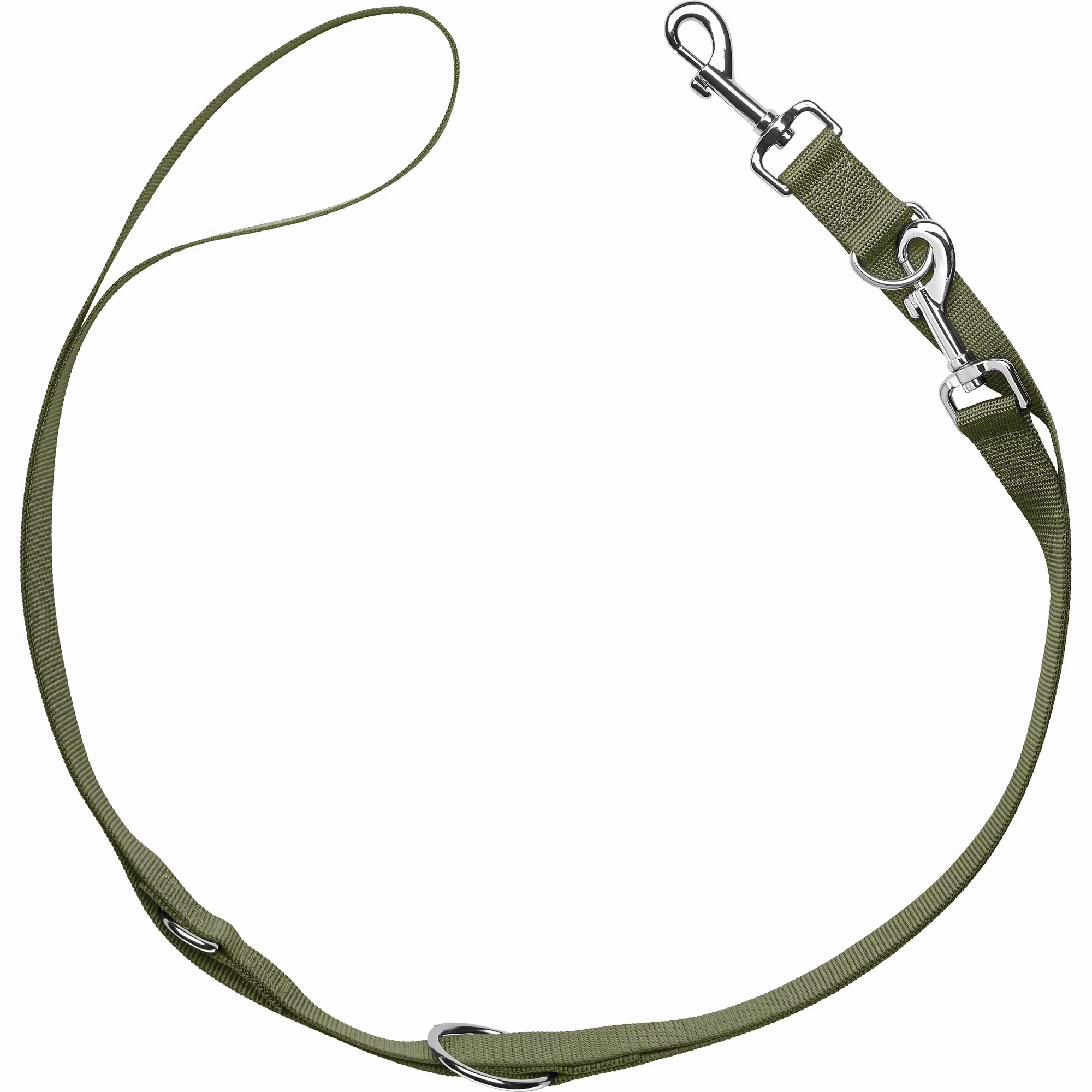 Multikoppel är ett allsidigt koppel som gör det enkelt att justera längden snabbt vid behov, på vanliga promenaden kanske man vill ge hunden lite mer frihet i kopplet, men i trånga utrymmen som tex trapp uppgången så kan man snabbt minska ner längden utan att få massa trassel i kopplet.