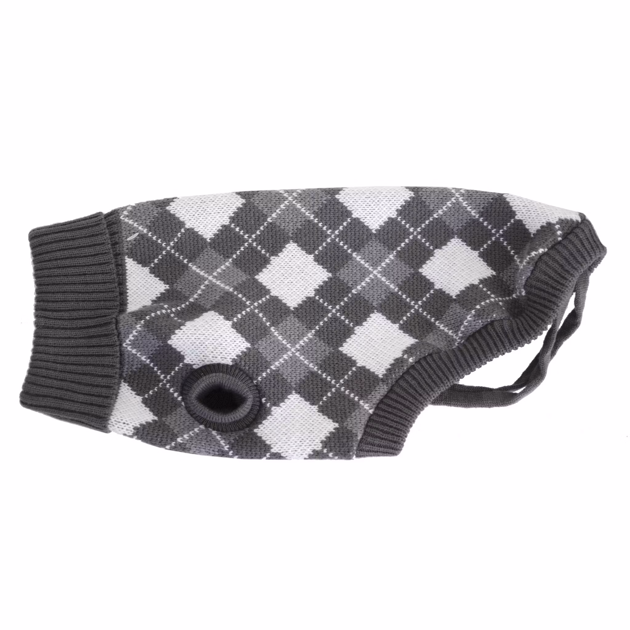 För att hålla tröjan säkert på plats har den korta muddar runt frambenen och band vid bakbenen. Tröjan är av 100% akryl.